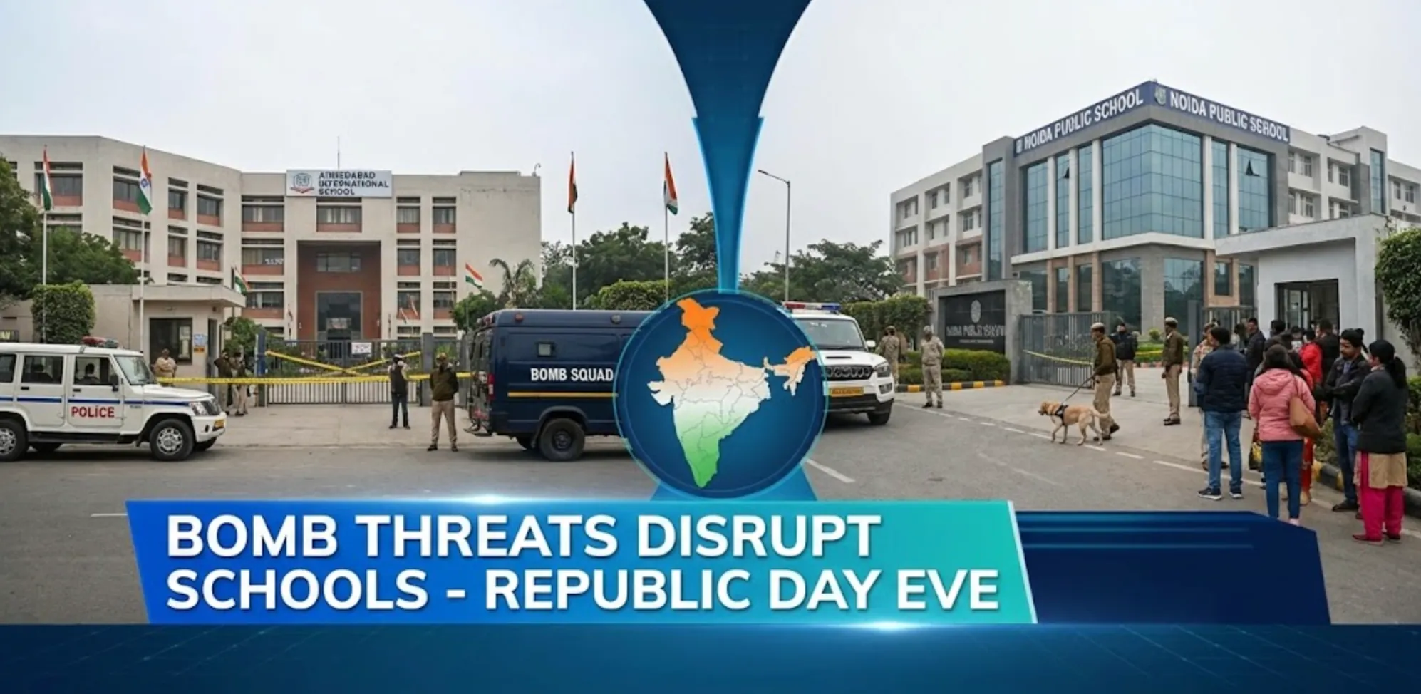 Several schools in Ahmedabad and Noida received bomb threats via email on Friday, January 23, 2026, just days before Republic Day.